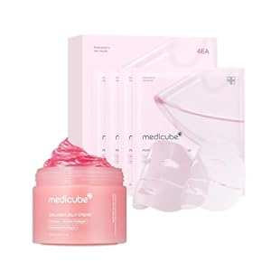 medicube Pink Glass Glow Duo for Uneven skin: Collagen Jelly Cream 110ml and Salmon DNA PDRN pink collagen jelly gel mask (4ea)