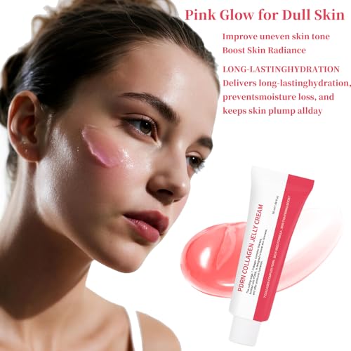 PDRN Collagen Jelly Cream, Hydrating Facial Moisturizer with 7 Collagen Complex, Pink Glow, Hyaluronic Acid, Lightweight Non-Greasy Formula for Plump & Smooth Skin 1.7 fl oz